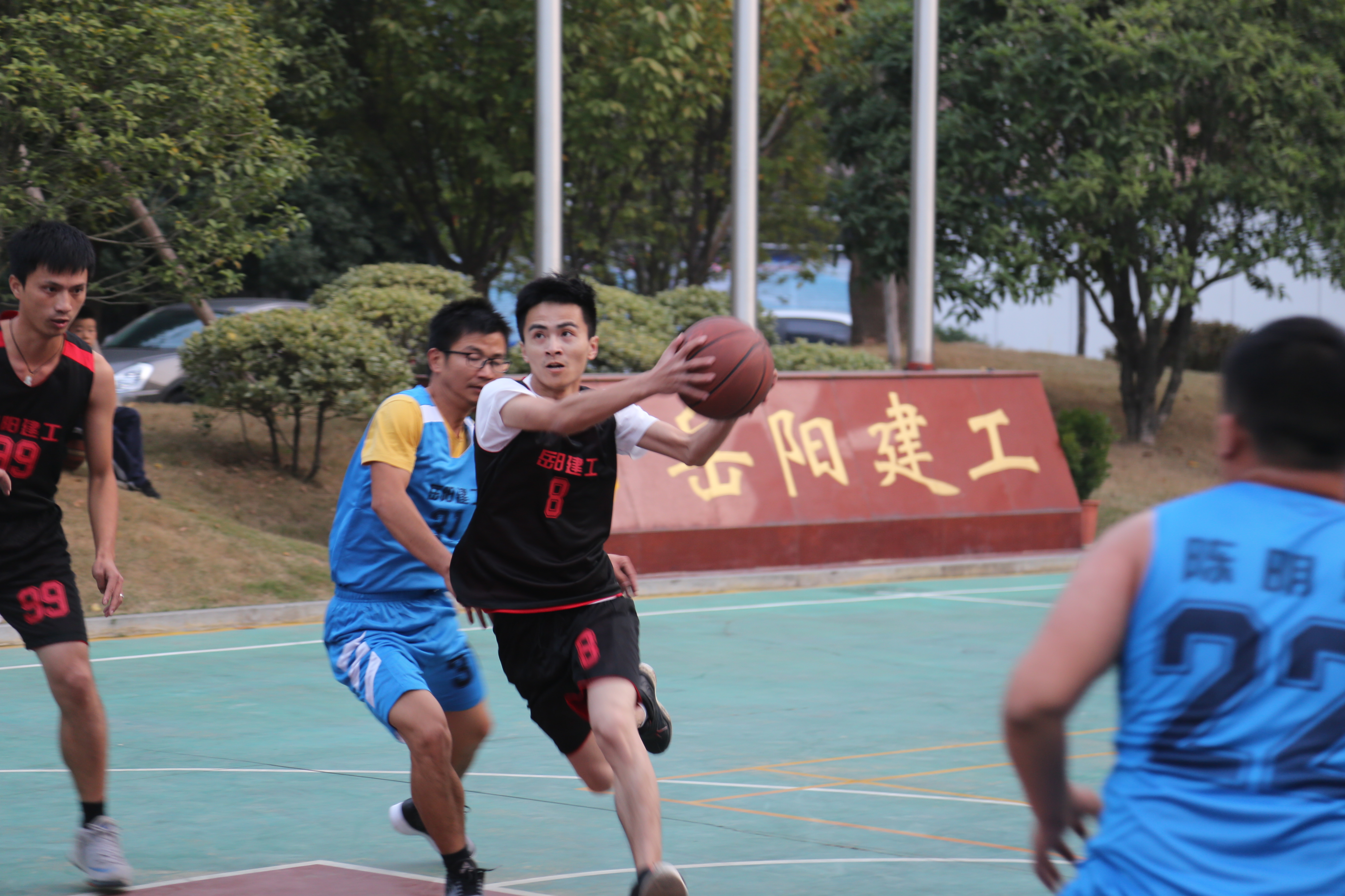 比賽于11月4日正式開始,來自公司機關(guān)及各項目部的8支代表隊參加比賽。賽場上,參賽隊員們反應(yīng)迅速,不時出現(xiàn)搶斷、快速反攻、奮力搶奪籃板等精彩瞬間。隊員們在場上比技術(shù)、比戰(zhàn)術(shù)、比速度、比耐力,一次次精妙的傳球,一回回精細(xì)的配合,一個個精準(zhǔn)的投籃,打出了“友誼第一、比賽第二”的體育精神,賽出了“熱情參與、共同提高”的比賽作風(fēng);工作人員積極做好后勤保障工作,裁判員公正無私,確保比賽順利進(jìn)行;各代表隊的啦啦隊員們歡呼吶喊,整個賽場就是一個策馬揚鞭馳騁千里的疆場,不斷掀起此起彼伏的聲浪。