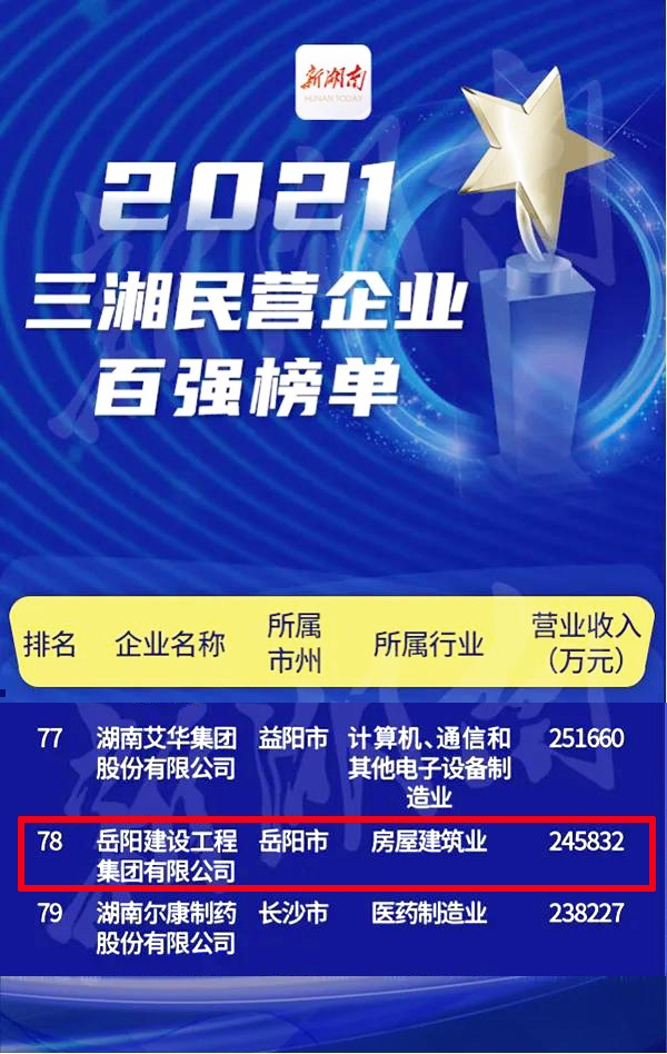 企業(yè)榮光 | 公司榮登2021“三湘民營企業(yè)百強(qiáng)”榜單!