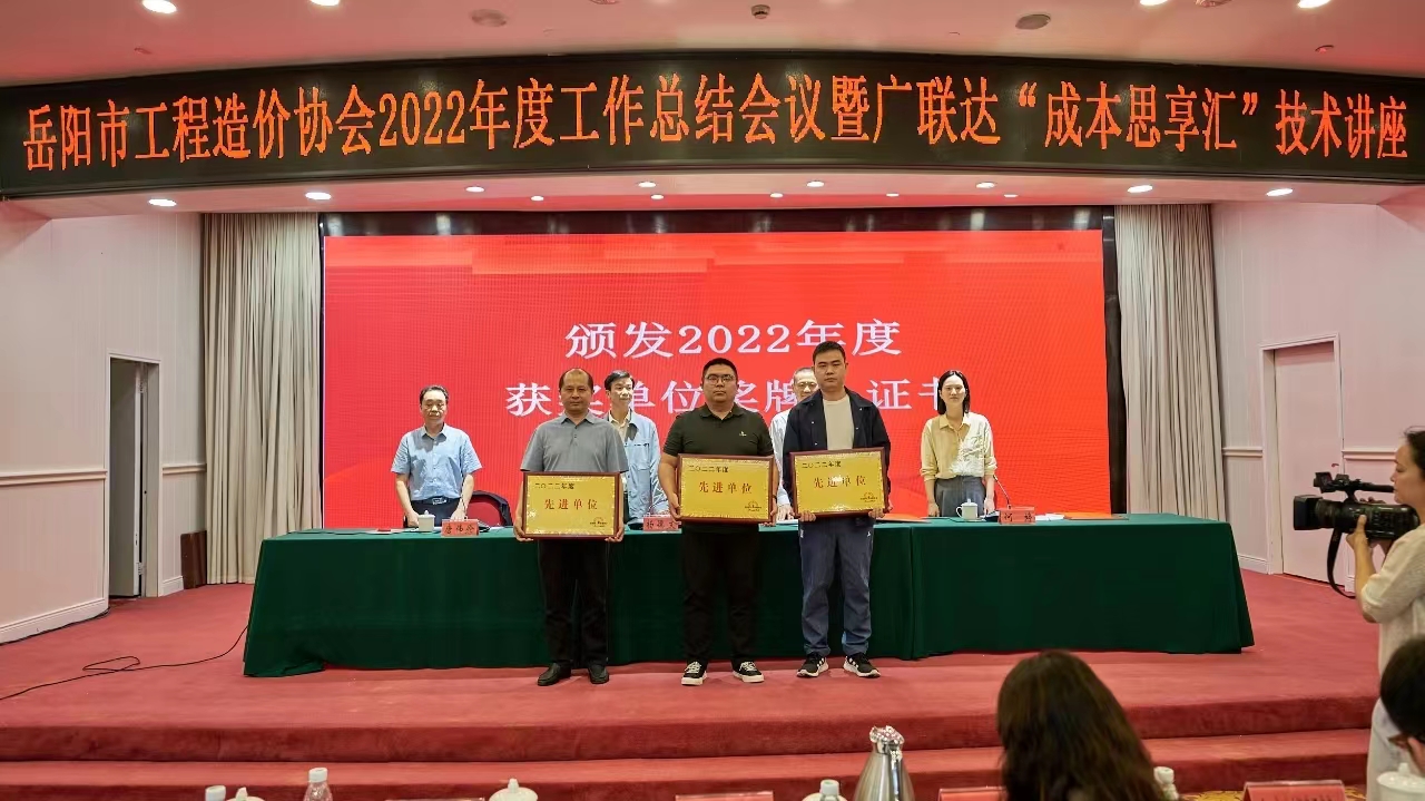 4月18日,岳陽市工程造價協(xié)會2022年度工作總結(jié)會議暨廣聯(lián)達(dá)“成本思享匯”技術(shù)講座在南湖賓館召開。會議對協(xié)會2022年度先進(jìn)單位、先進(jìn)個人進(jìn)行表彰,岳陽建工集團(tuán)名列其中,被協(xié)會評為“2022年度先進(jìn)單位”。