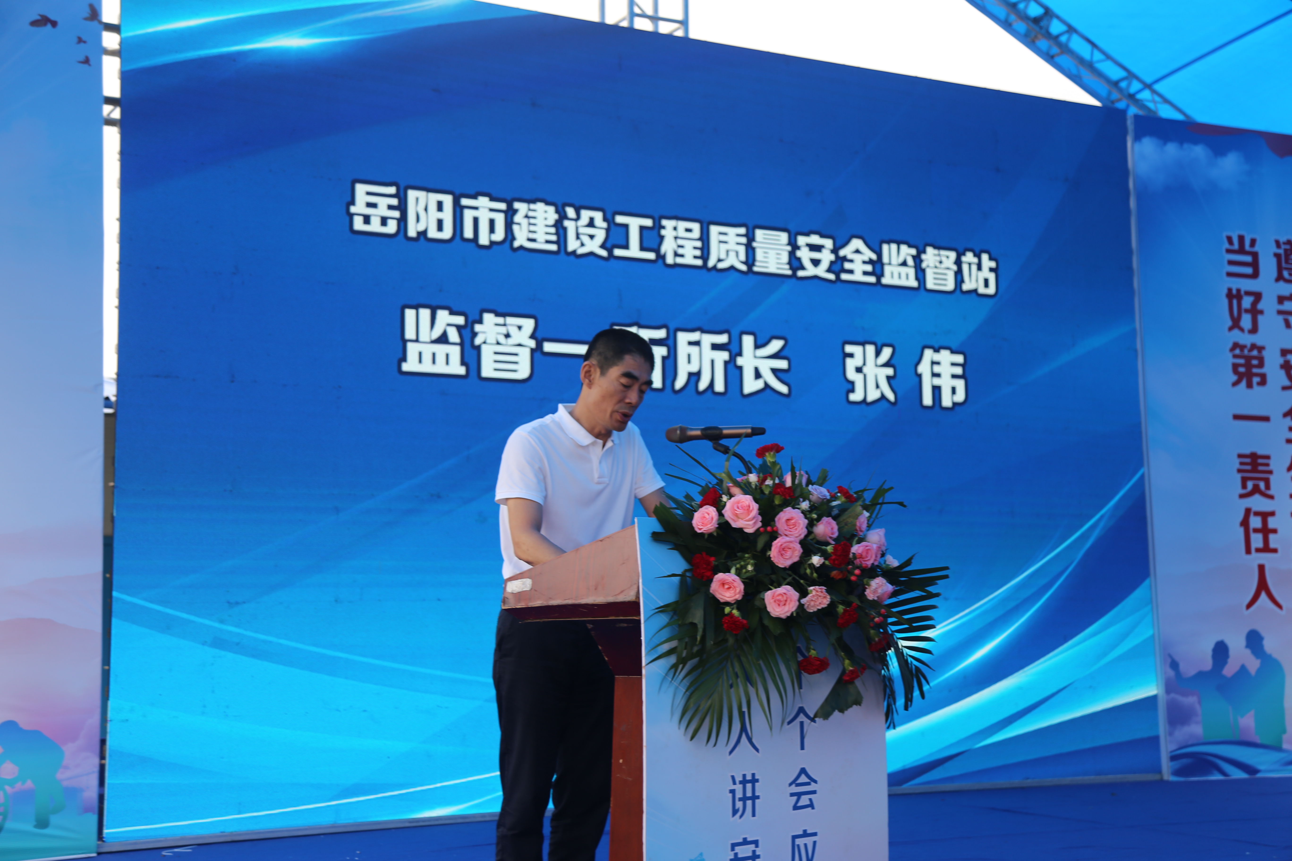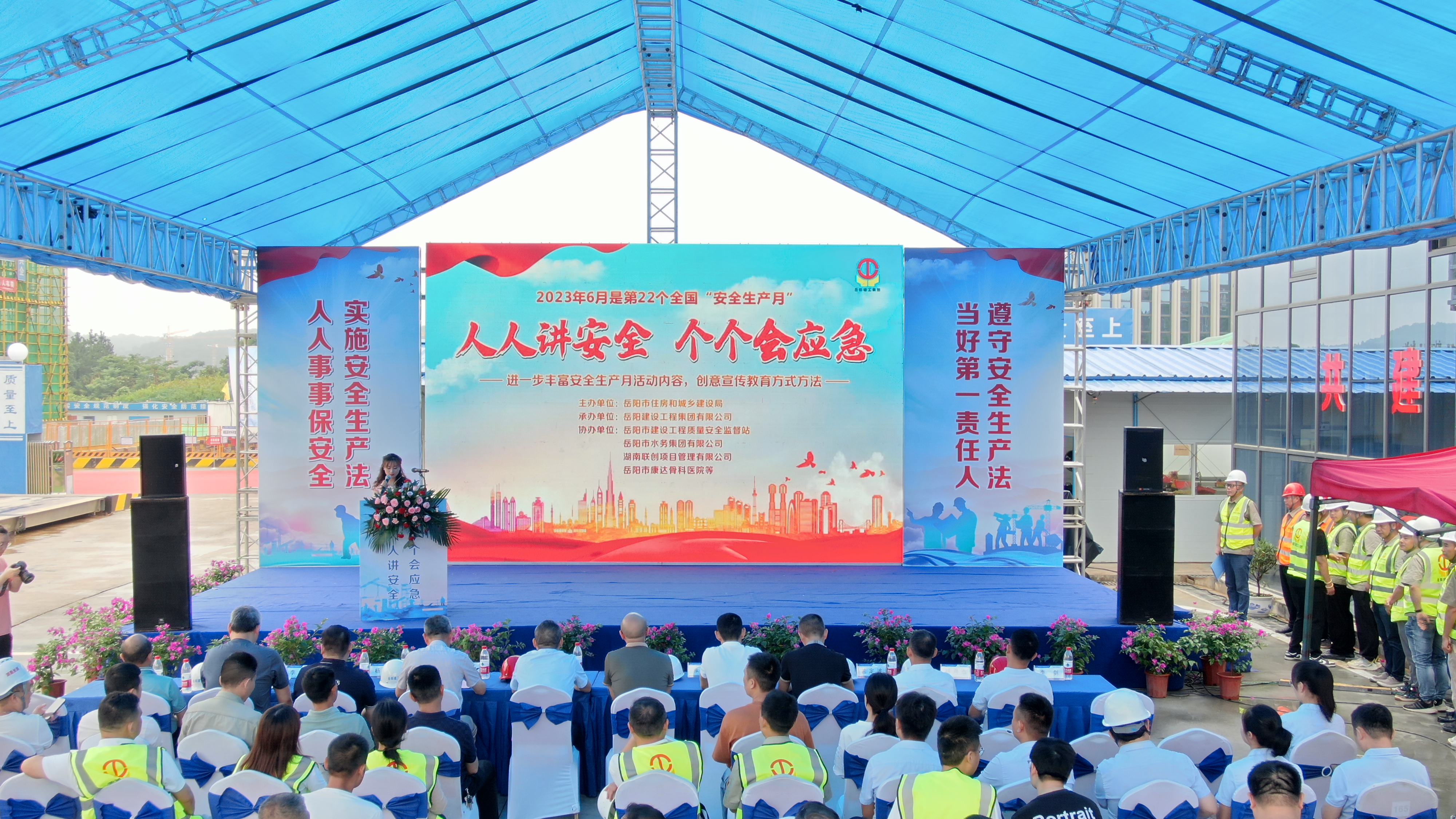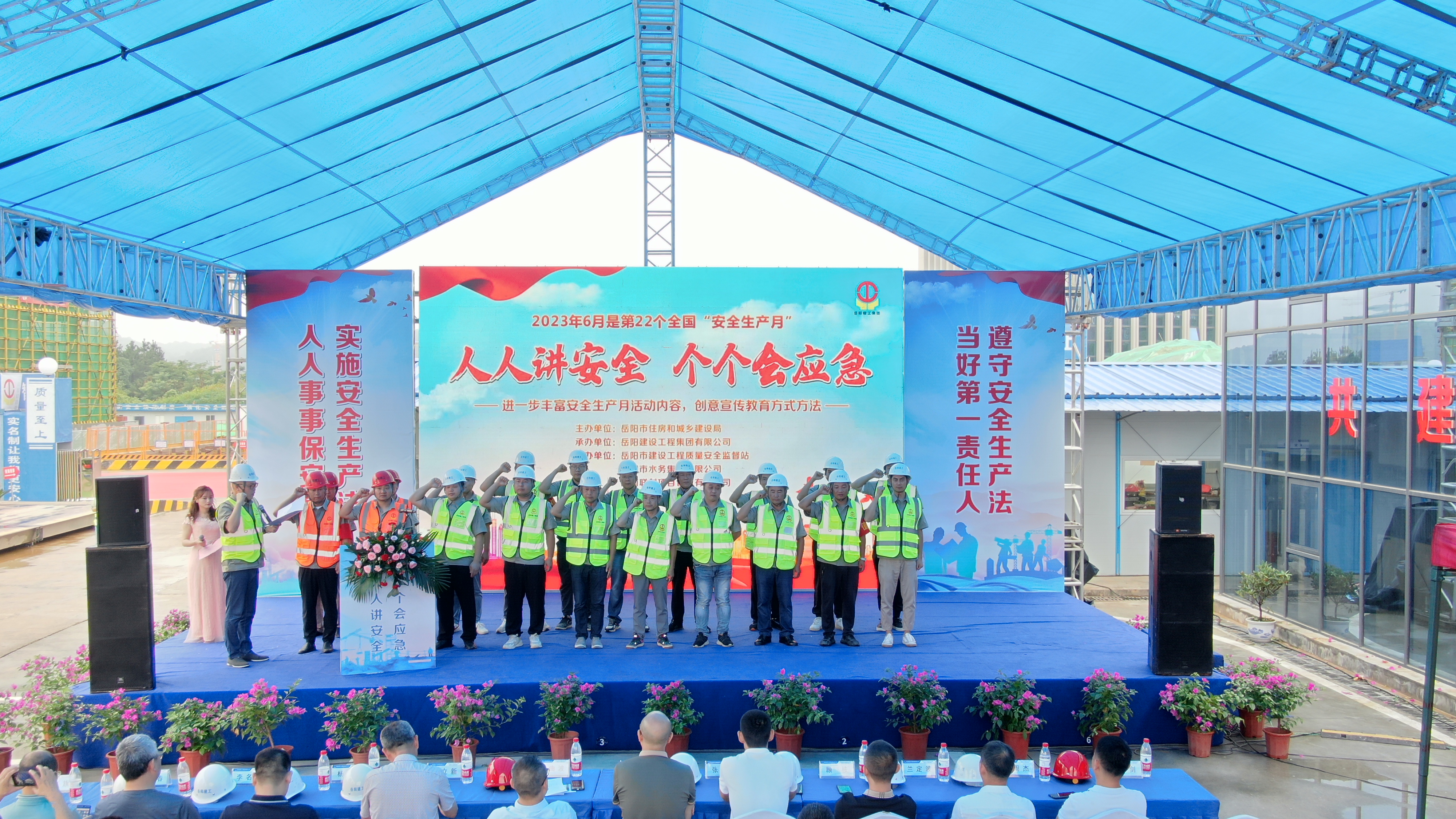 為深入學習貫徹習近平總書記關(guān)于安全生產(chǎn)重要論述,提升社會公眾安全意識和自救互救能力,帶動全國安全生產(chǎn)專項整治三年行動整體推進,切實提高本質(zhì)安全水平,以“安全生產(chǎn)月”為契機,6月19日,岳陽市住房和城鄉(xiāng)建設(shè)局圍繞“人人講安全 個個會應(yīng)急”這一活動主題,在岳陽建工集團水務(wù)集團供水調(diào)度指揮中心項目施工現(xiàn)場開展安全生產(chǎn)現(xiàn)場觀摩交流會活動。岳陽市建設(shè)工程質(zhì)量安全監(jiān)督站監(jiān)督一所所長張偉、南湖新區(qū)住房建設(shè)局局長葛明、公司監(jiān)事長王立新等領(lǐng)導出席活動。